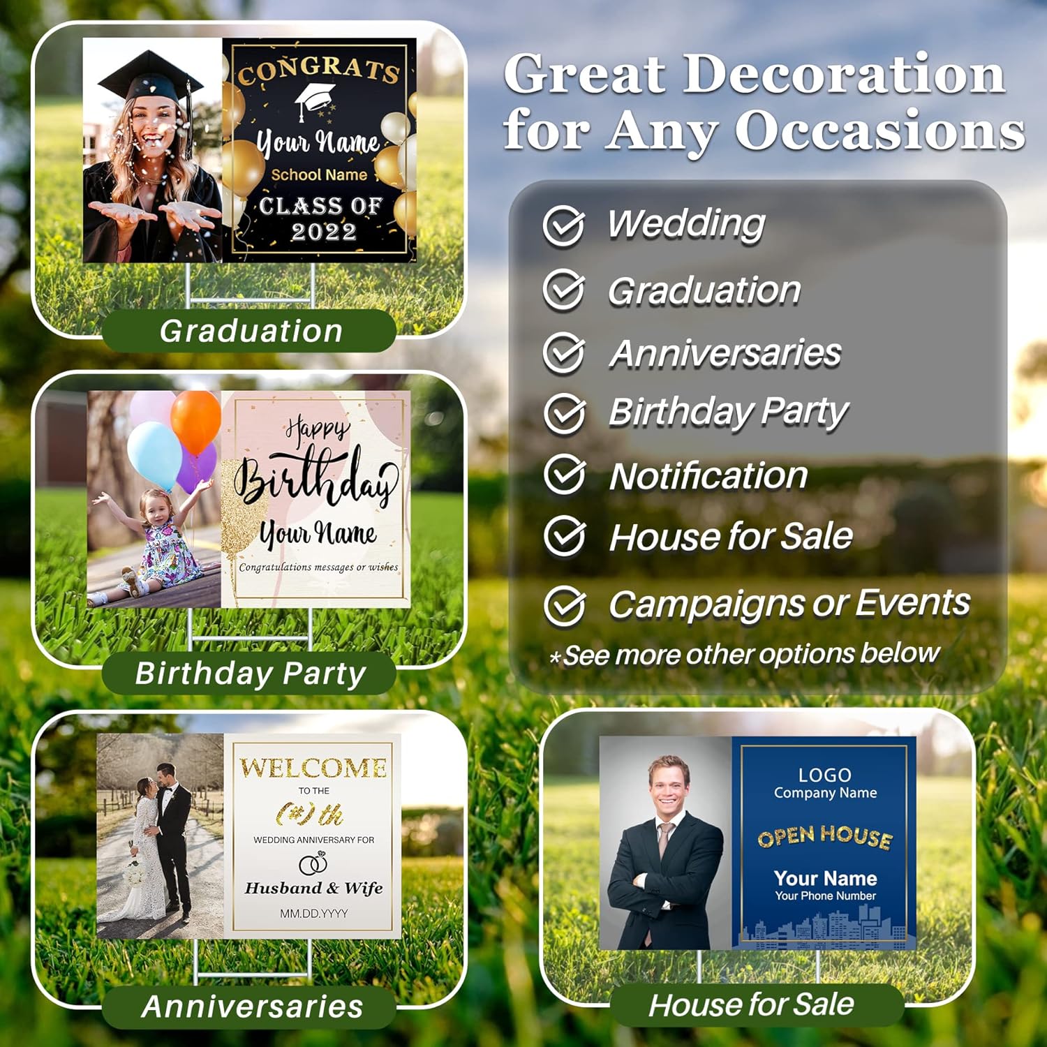 - Customizable Real Estate Theme: Tailor your yard signs with a professional real estate design to effectively advertise properties, open houses, or real estate services.
