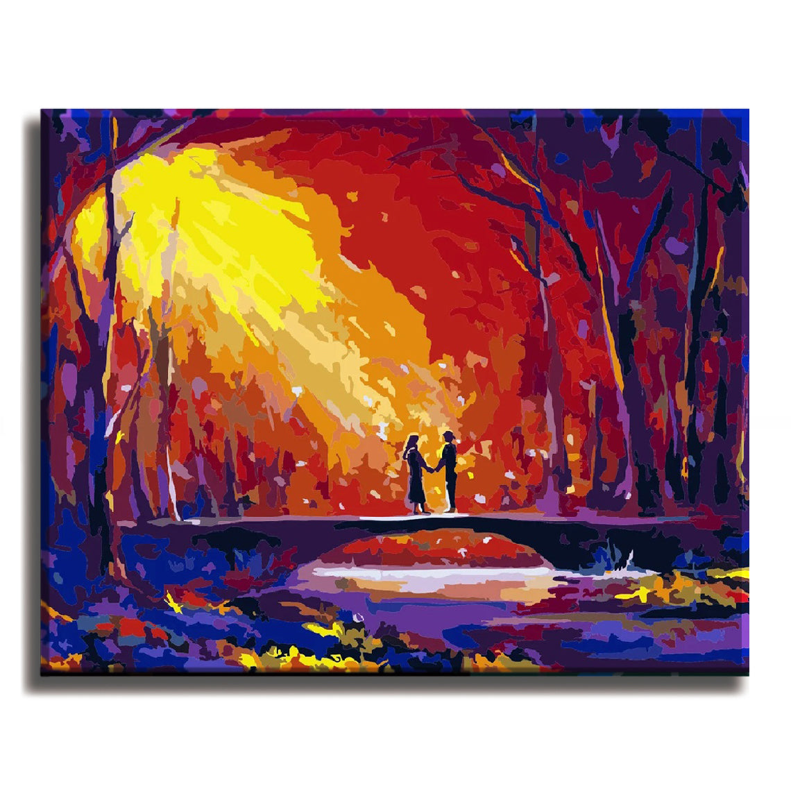 Lovers on Bridge in Forest - Paint by Number Kit DIY Oil Painting on Wood Stretched Canvas 16"x20"